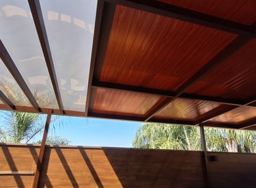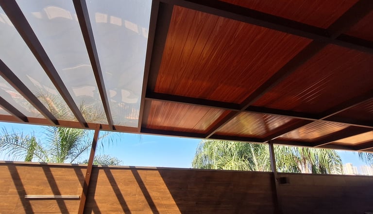 COBERTURA DUO POLICARBONATO COMPACTO TERMOACÚSTICA FORRA AMADEIRADA